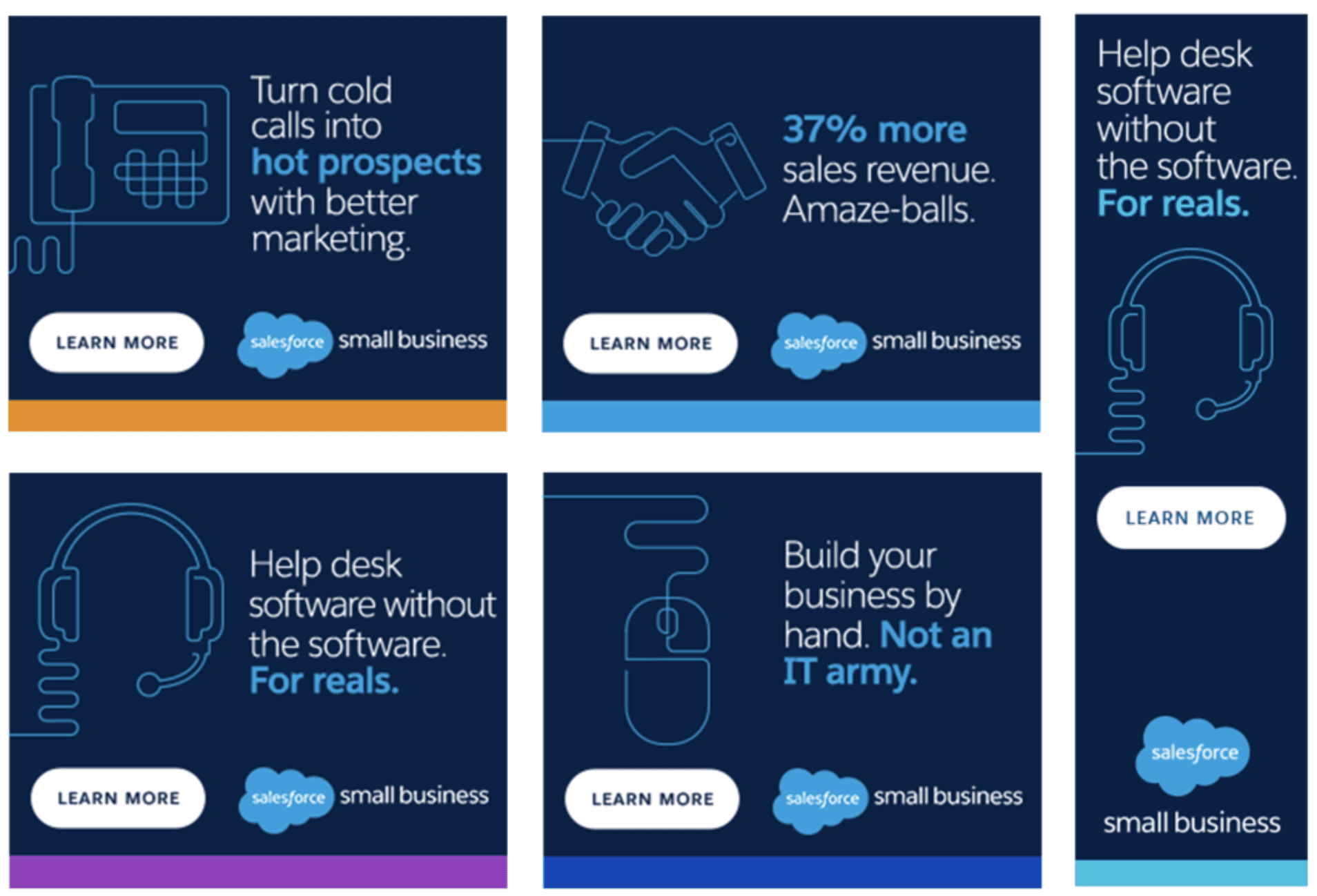 Our initial engagement was to design the look and feel for the Small Business group's first ever Dreamforce contest. This developed into the "growth line" visual identity system, which positively represented the group across multiple campaigns.
